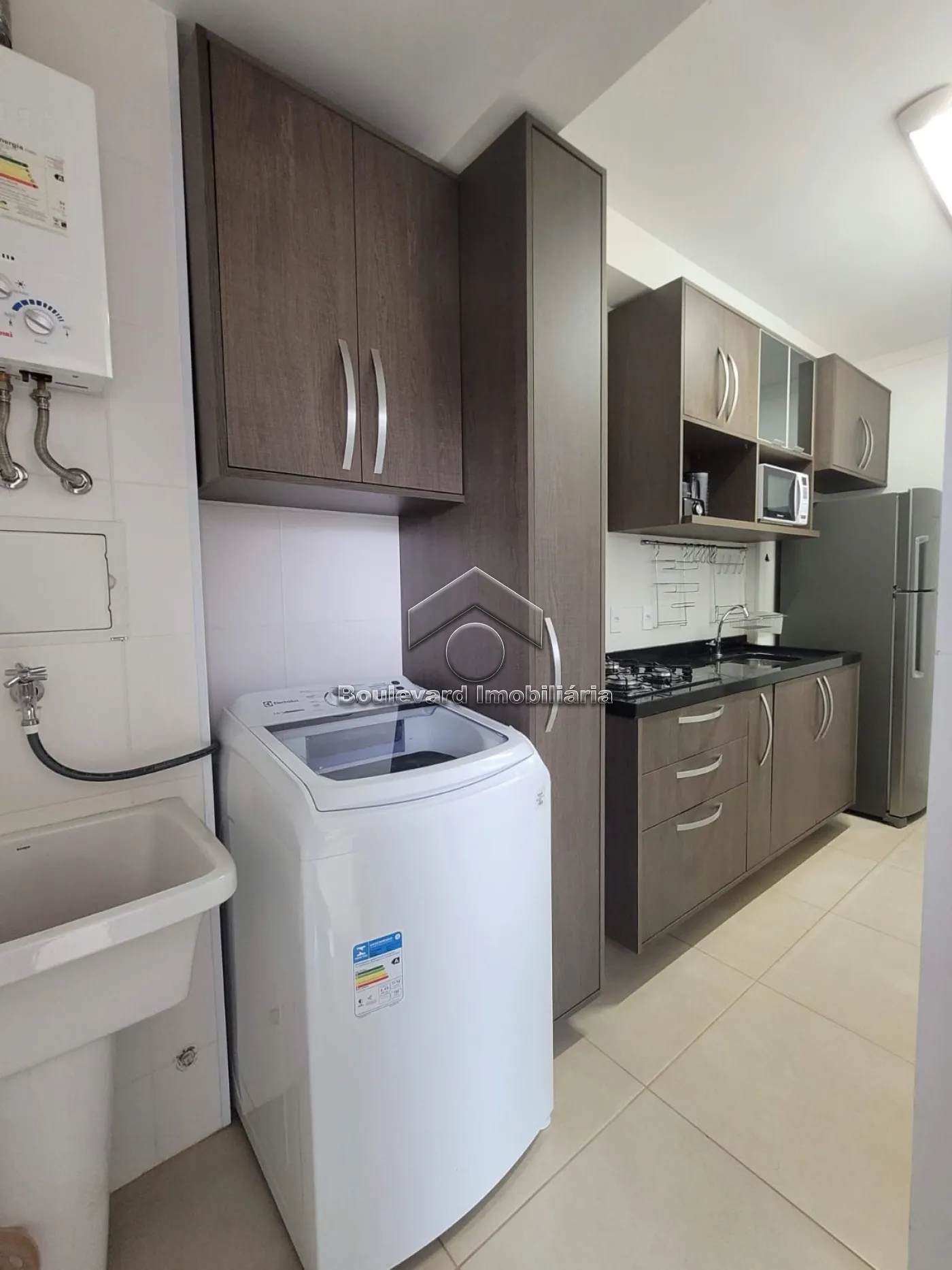 - Área de serviço com armário e maquina de lavar;