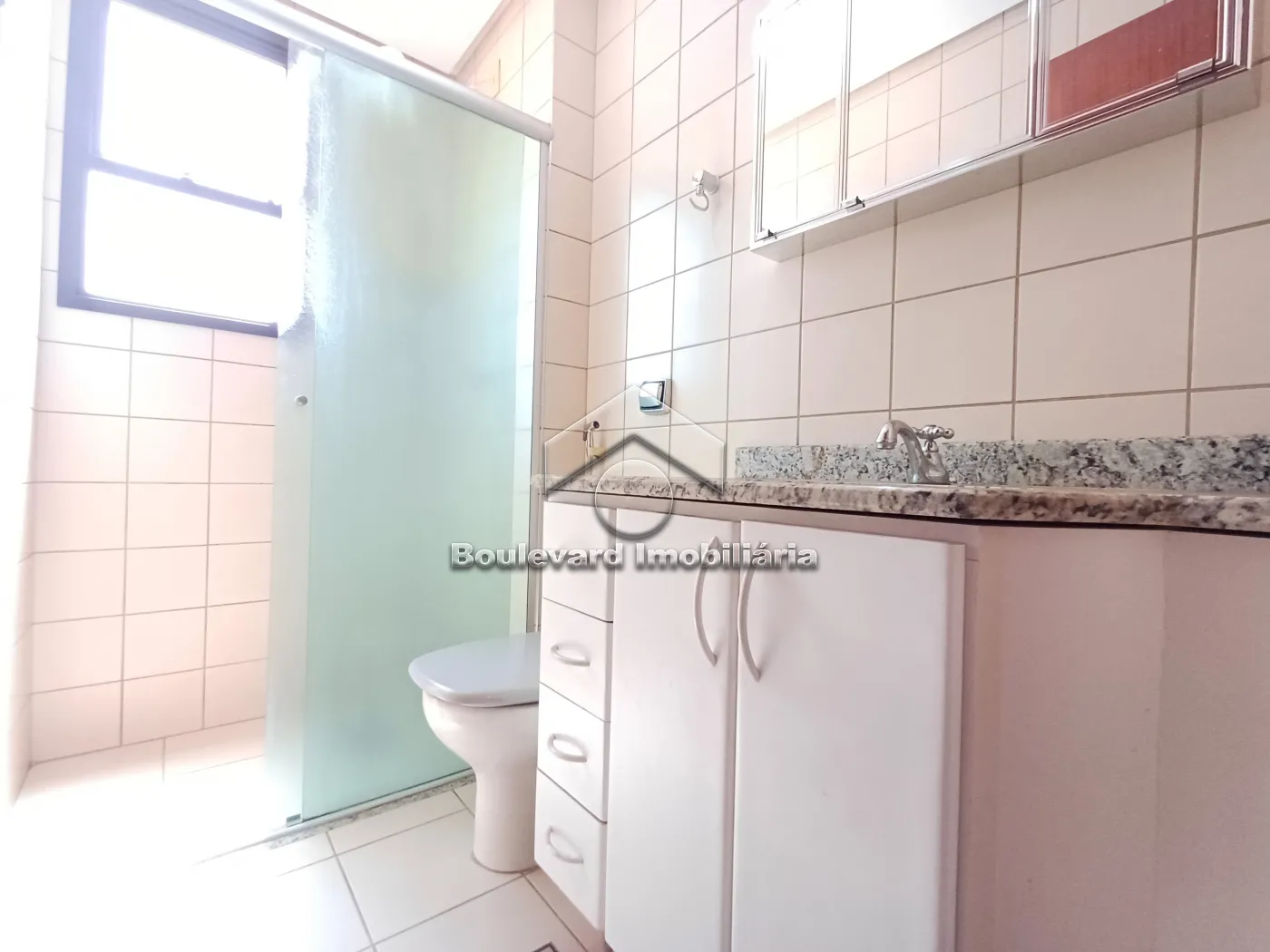 - 1 Banheiro com gabinete, espelho e box blindex;