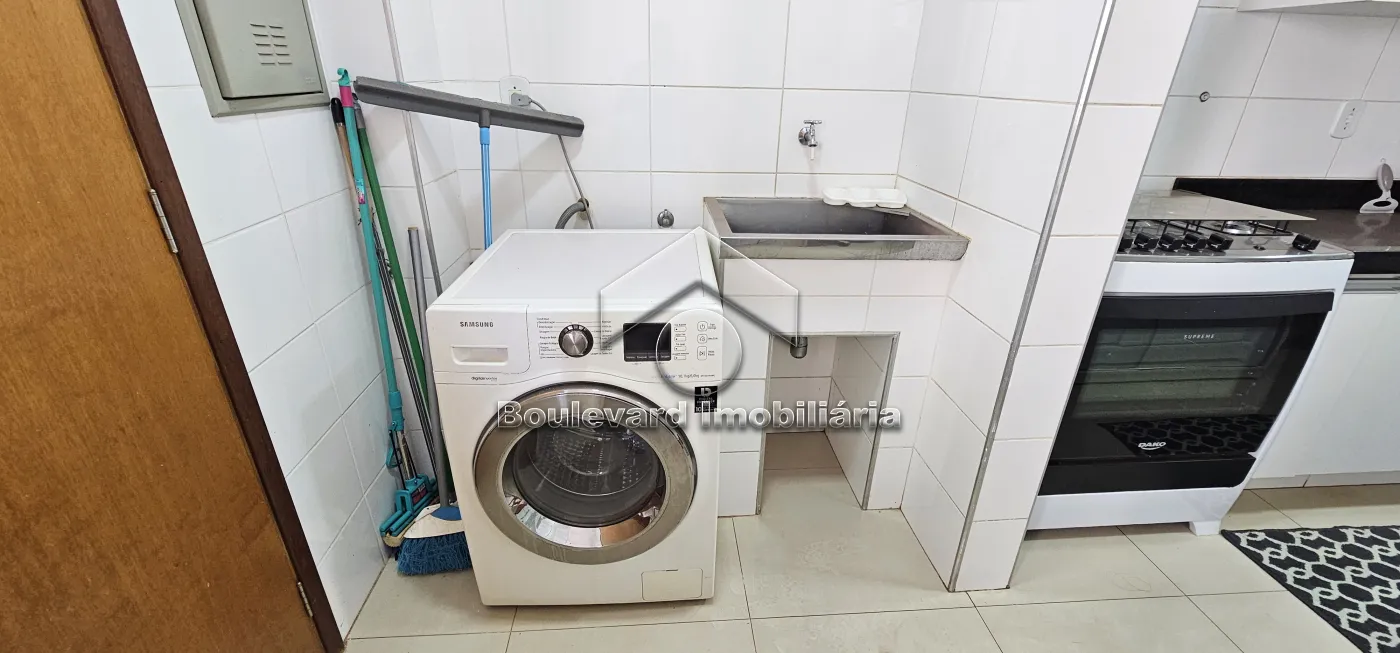 - Área de serviço com armários e máquina de lavar roupas;