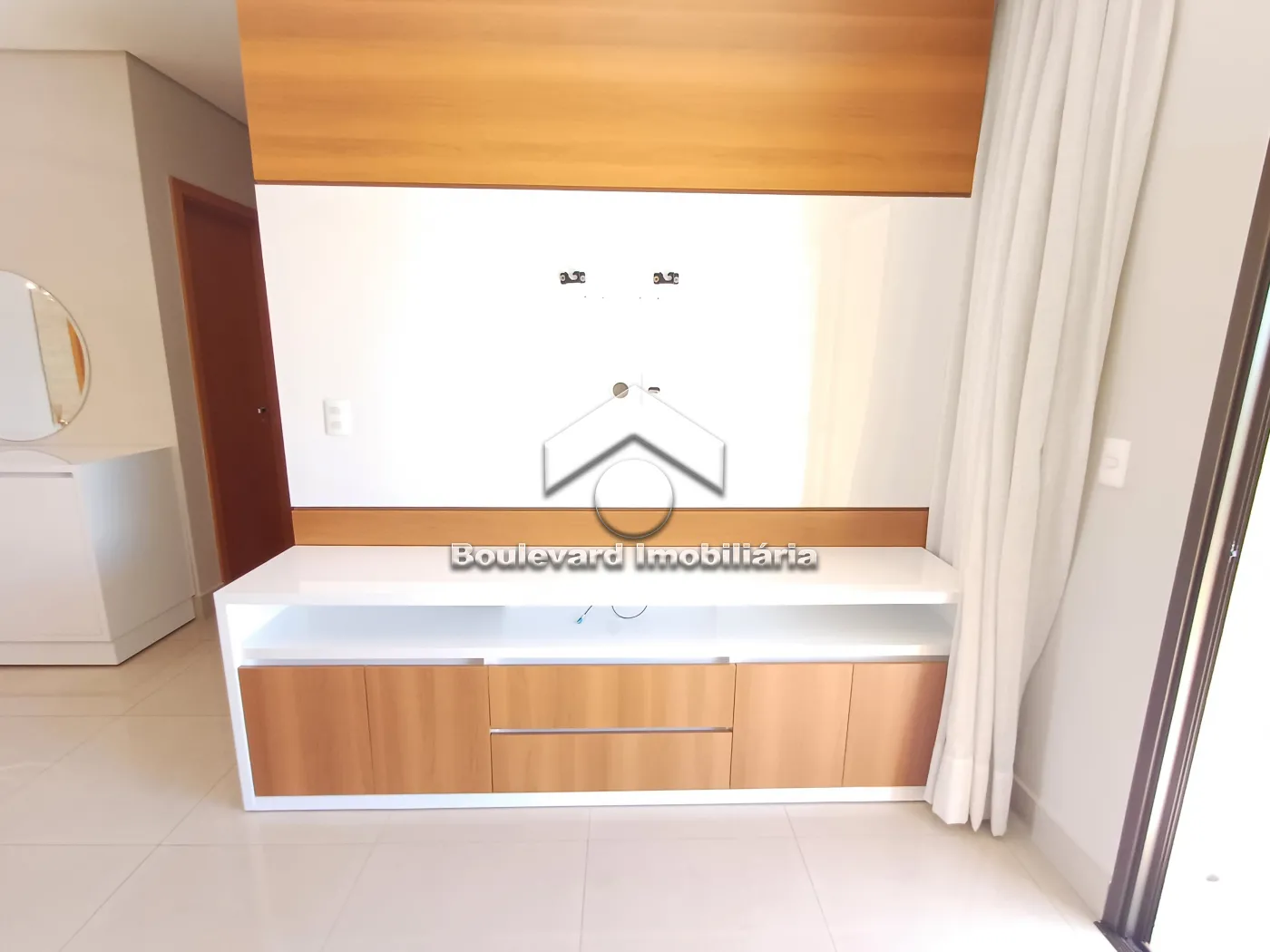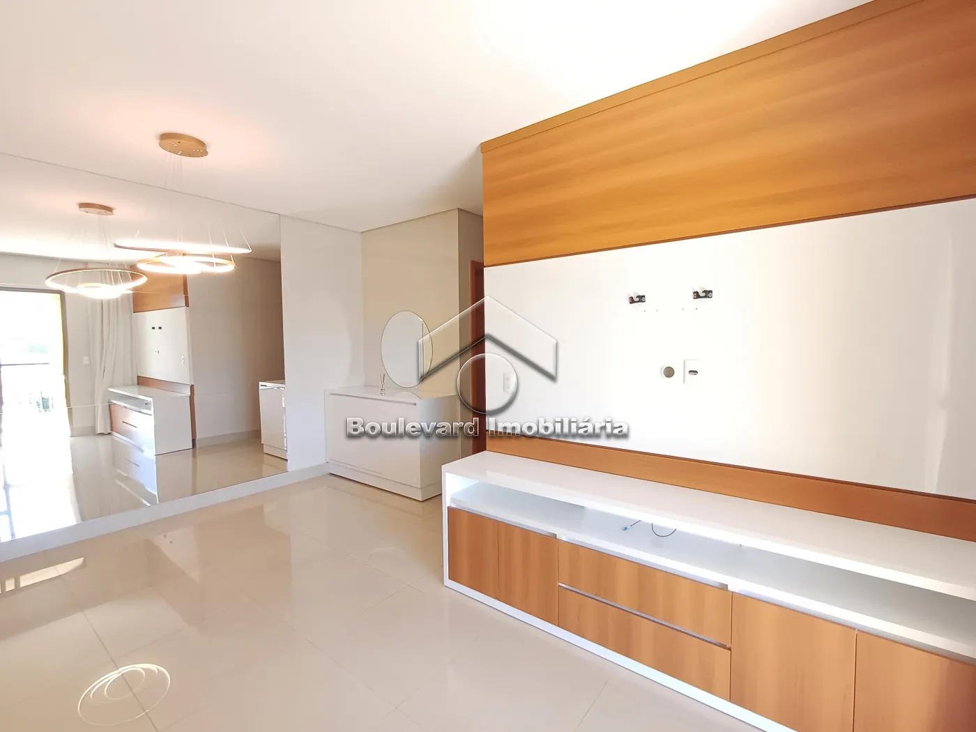 - Sala 02 ambientes com painel para televisão, aparador, buffet e espelhos;