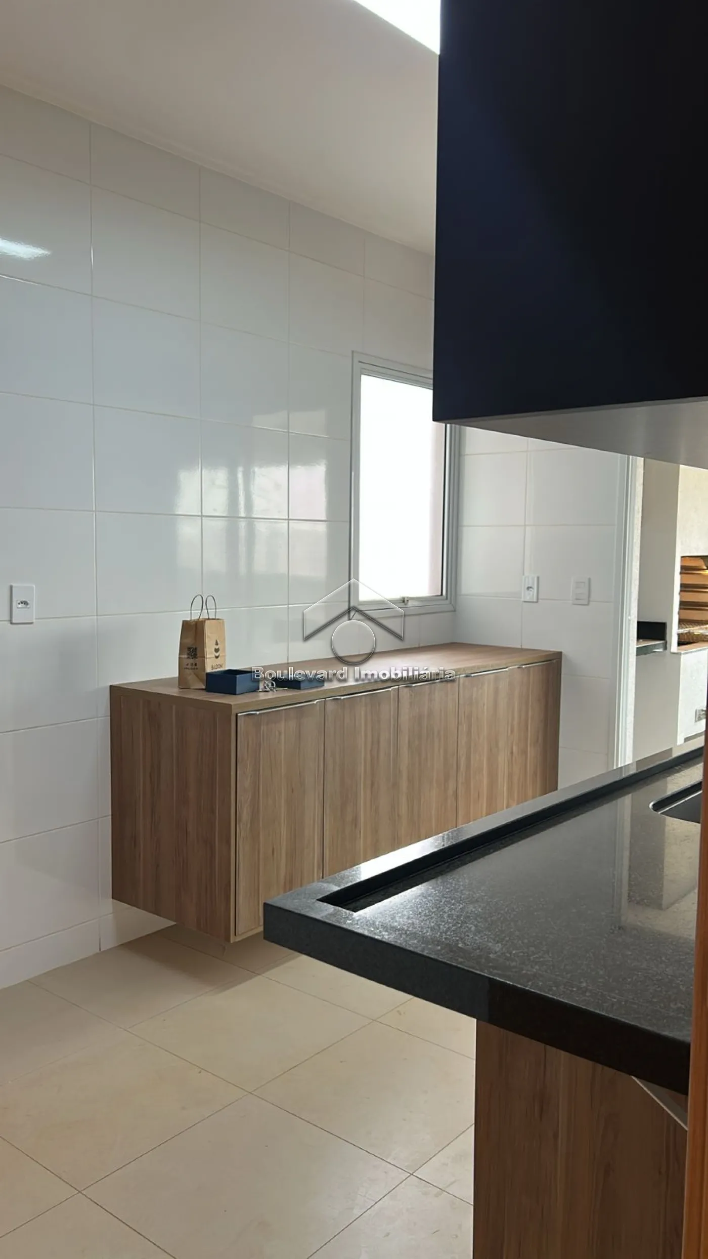 - Varanda gourmet fechada com blindex, armários e churrasqueira a carvão;