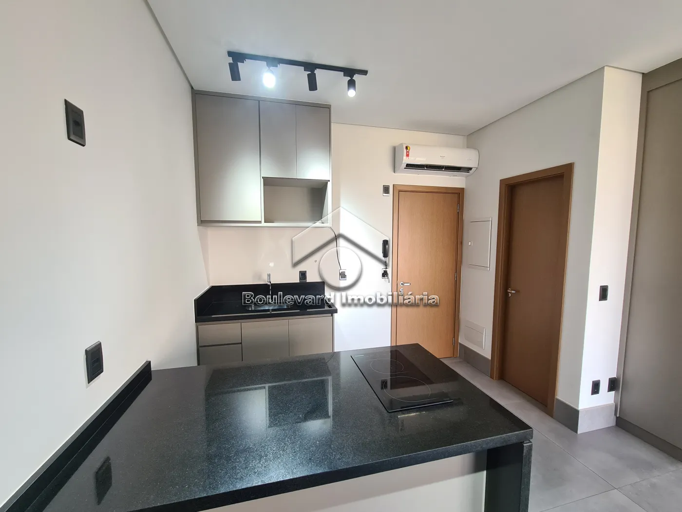 - Cozinha com armários planejados e cooktop;