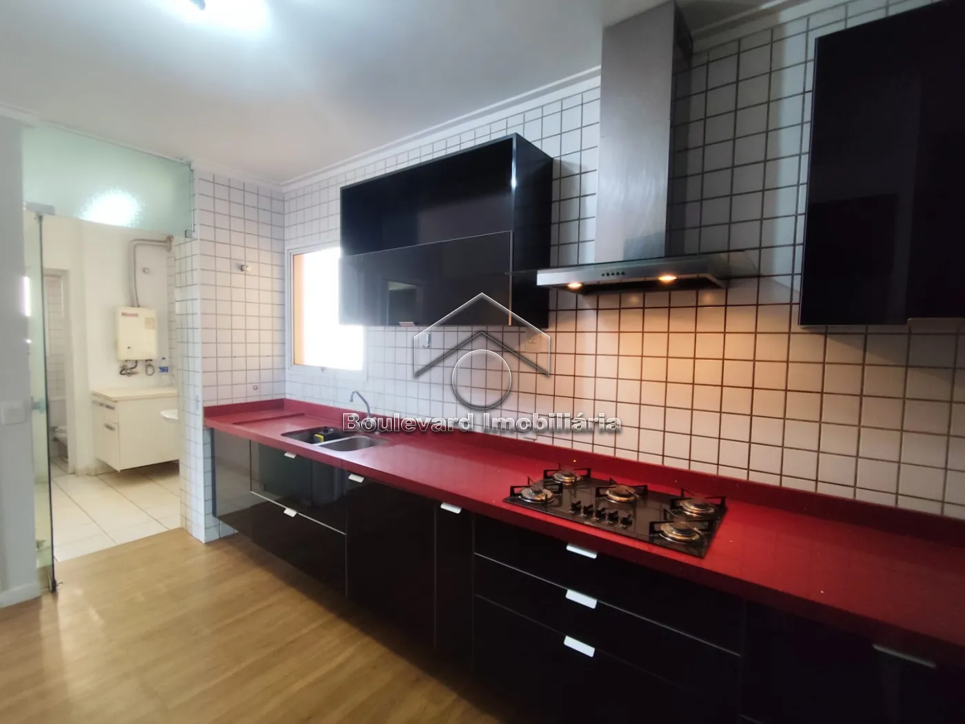 - Cozinha com armários planejados, cooktop e depurador de ar;