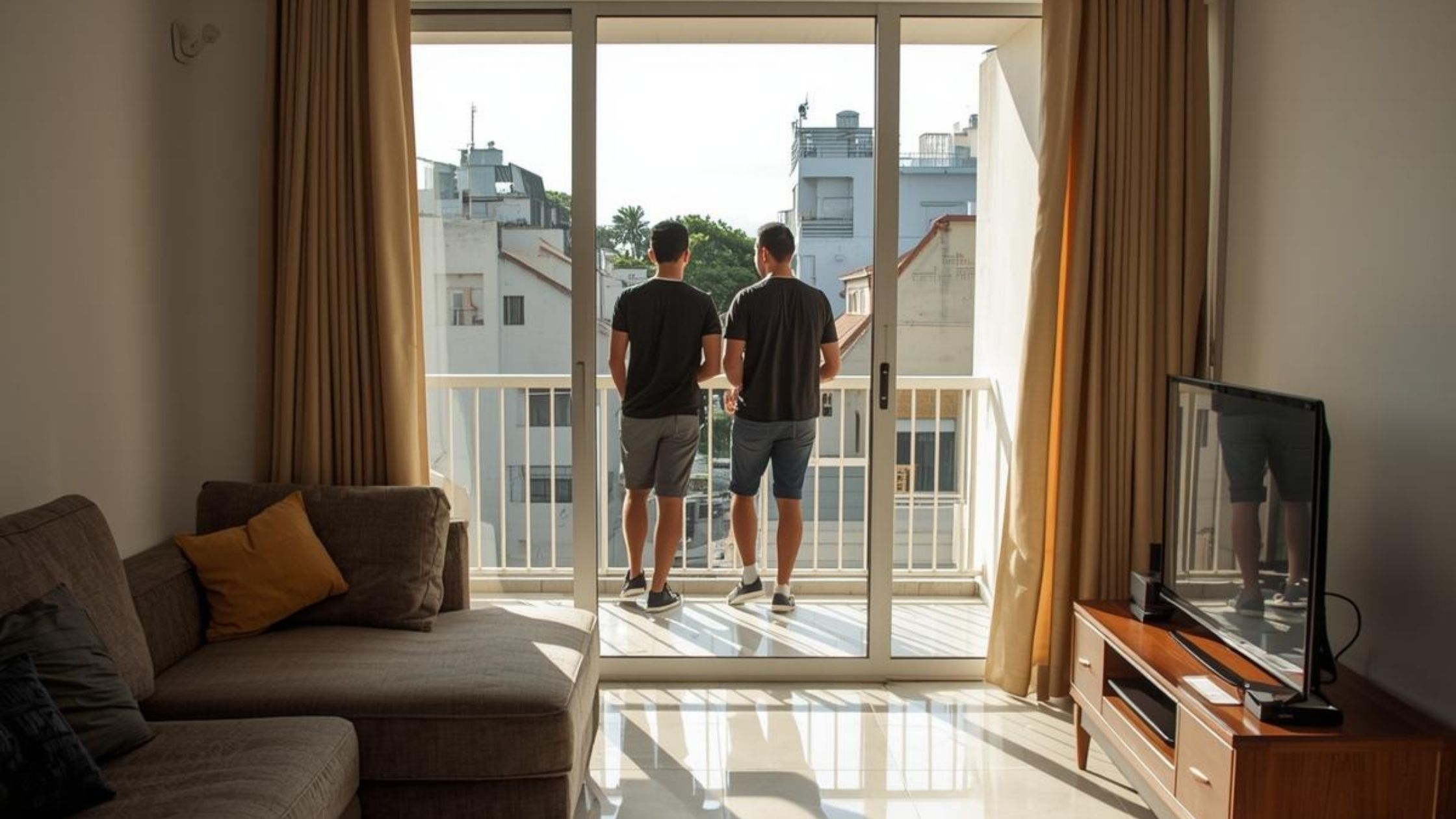 (Imagem gerada por IA: estudantes visitando apartamentos e analisando localização)